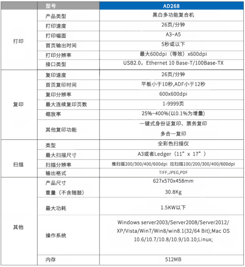 震旦打印機(jī)AD268黑白多功...